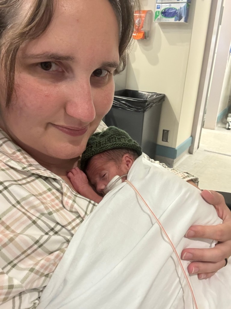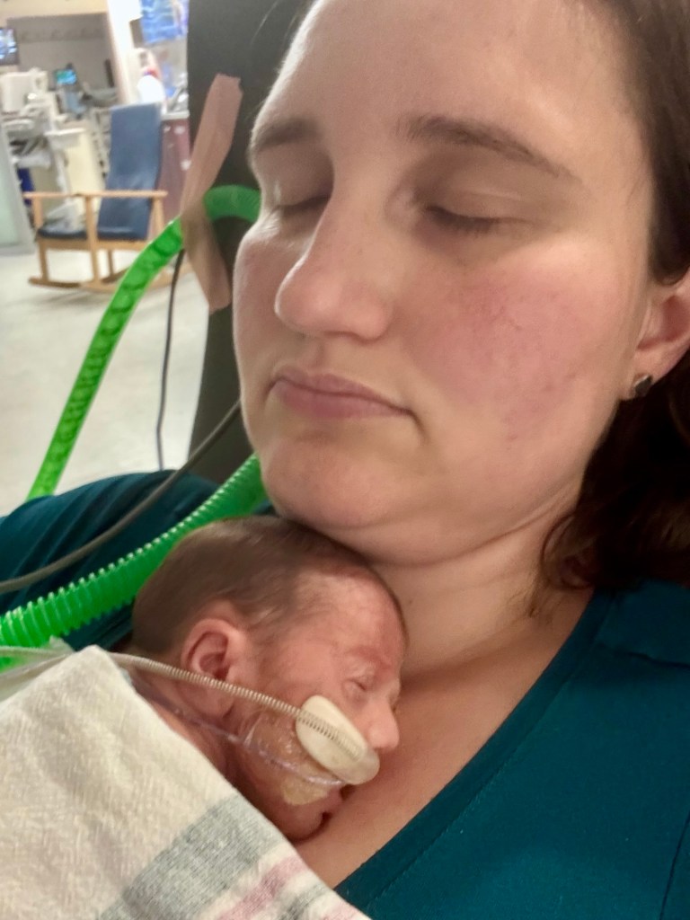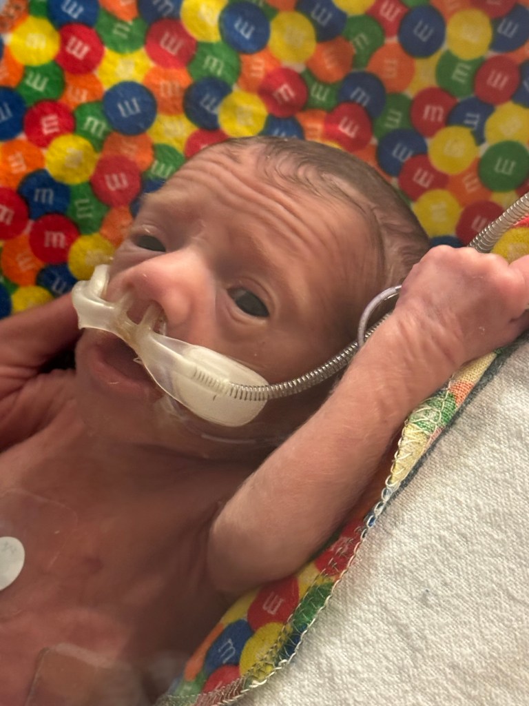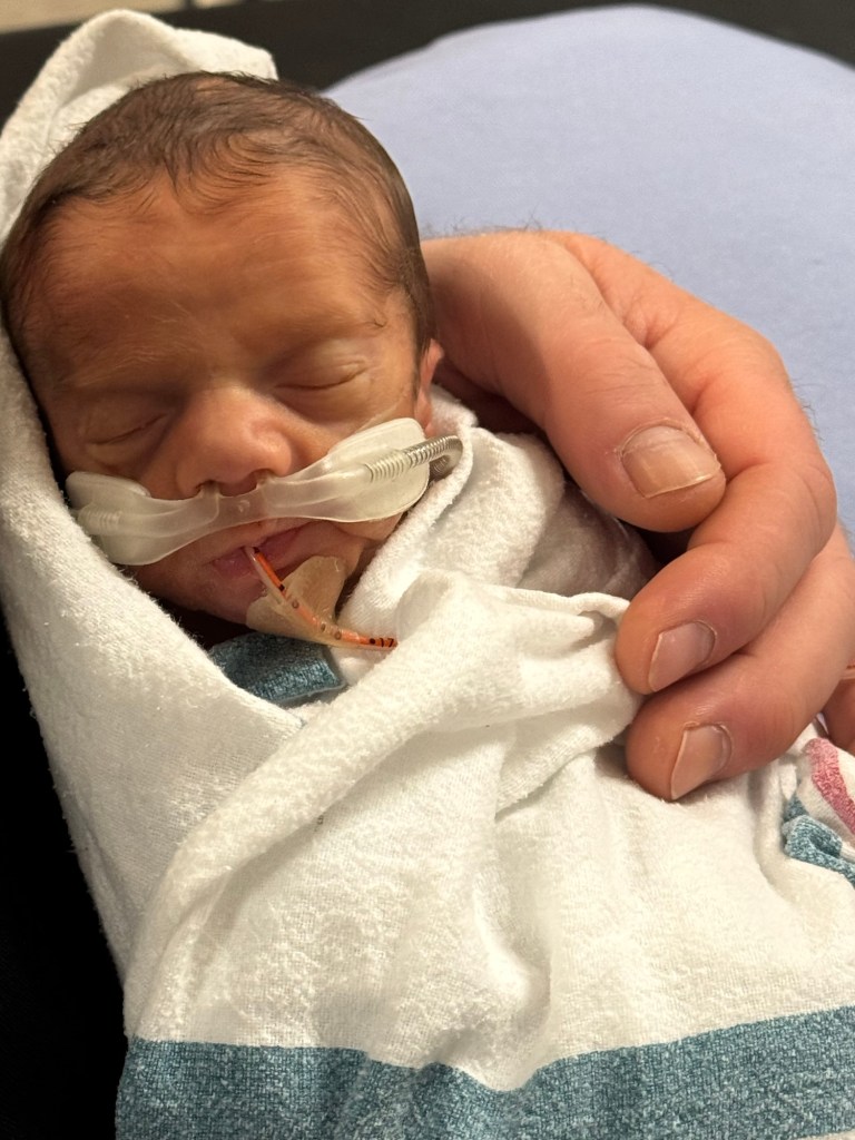 Our first highlight is Aiden’s umbilical IV was removed today. He now has just his air support and monitors. Aiden was lucky to not have another IV put in. Babies his age would usually have an IV put in their hand or arm for support, but our little superstar didn’t need one. The umbilical IV can only stay in up to roughly 8 days of age before it has to be removed.
