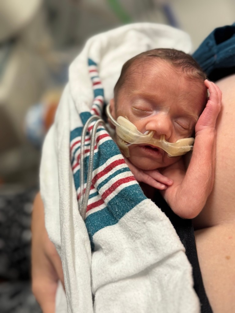 Then on day 18 in the NICU, we finally had some good news. Aiden got to move to the Blue Room! This was a huge surprise to us and a big milestone in the NICU. We were currently in the red room, which is for the most critical and smallest babies. The blue room is for the babies that are a bit bigger, on less support and is one step closer to going home! I was an exciting move.