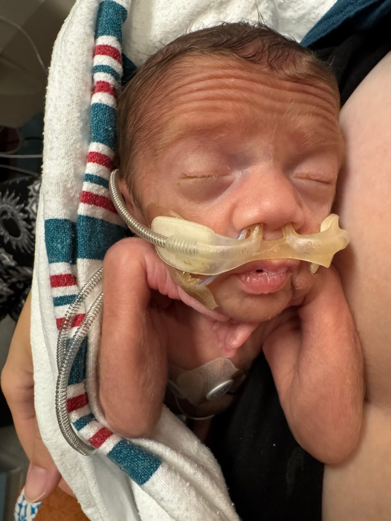 This was a bit of a rough week. I convinced the doctor to try Aiden at a half dose of the human fortified milk (HMF) as he was really not doing well on the 20ml dose. I am having a very hard time with the HMF. They give it to preemies to increase their growth rate and give them more vitamins and minerals as they burn through so much more than a standard newborn. However, the HMF is hard on their gut, Aiden in particular… well i’m surprised he has allergies on both sides of his family! The HMF constipates a lot of babies, but so far it does the opposite for Aiden. He poops soooo much, has horrible gas, spits up, and is so uncomfortable and unhappy. After Aiden puked up his morning meds and feed all down both of us, I put my foot down.