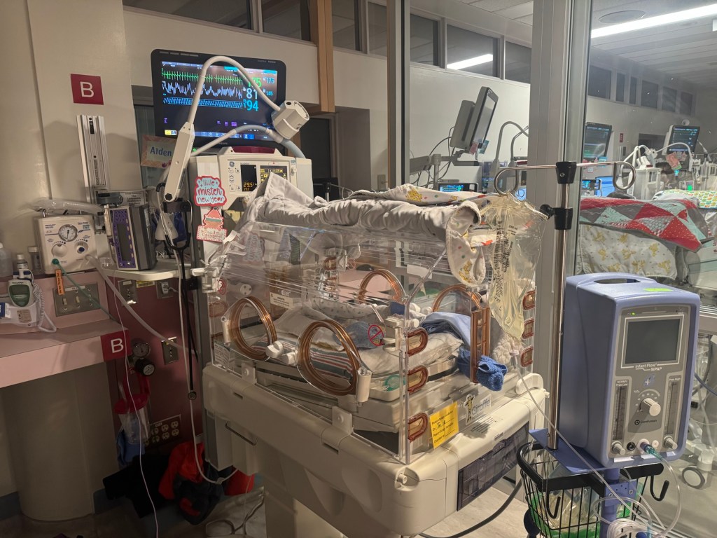 Then the next day… Aiden was good… but I fell apart. Its just been one thing after the next this week. BC Health orders bring back mask mandates. I come walking into the NICU and am handed a mask and told we have to wear them. I was in complete shock and instantly crumbled into a crying disaster. If there isn’t enough stress this was the last thing i needed to be added to the pile. I was absolutely devastated at the fact Aiden would not see my face for the next 2-3 months. When i looked into the incubator at him, he gave me this weird look back. He was just at the point of really starting to respond to our facial expressions and now that was stripped away. I am not joking when I say i sat there googling every possible alternative of where we could move to not have to wear a mask. I searched for in home NICU care – nope doesn’t exist. I looked up Alberta NICU’s. I know Aiden is suppose to be still in me and wouldn’t see my face usually, but he’s here, and he’s interacting with us and I was just heartbroken. After an immense amount of stress and crying a nurse came up to me and said, i just checked and confirmed – parents don’t need to wear masks, just staff! Wow was that a relief, but by this point I was so exhausted from the previous hour that I could just hardly process anything. George was sure excited for that news to, because he was so concerned i was going to make a snap decision about moving somewhere else, after finally getting settled here.